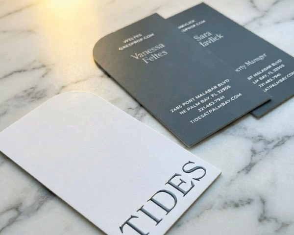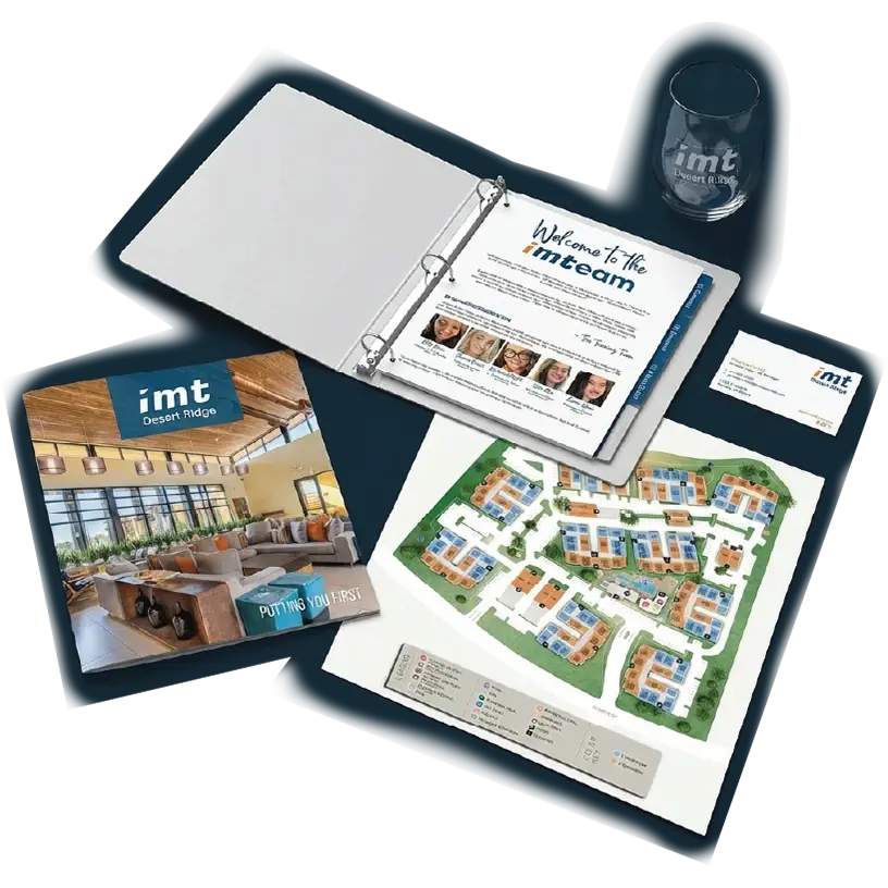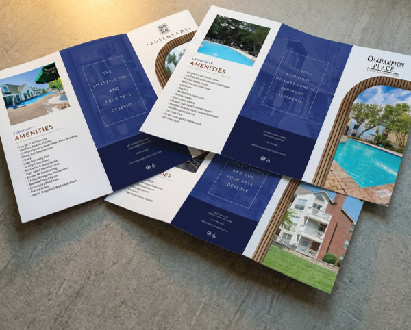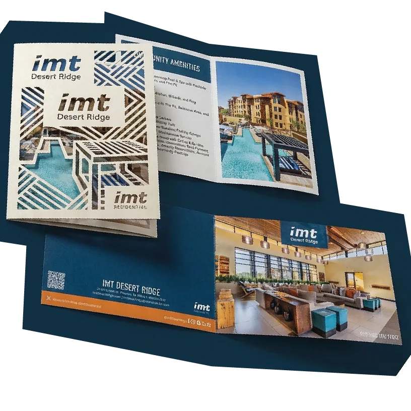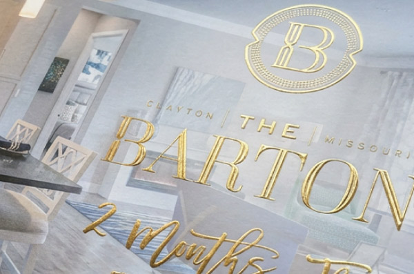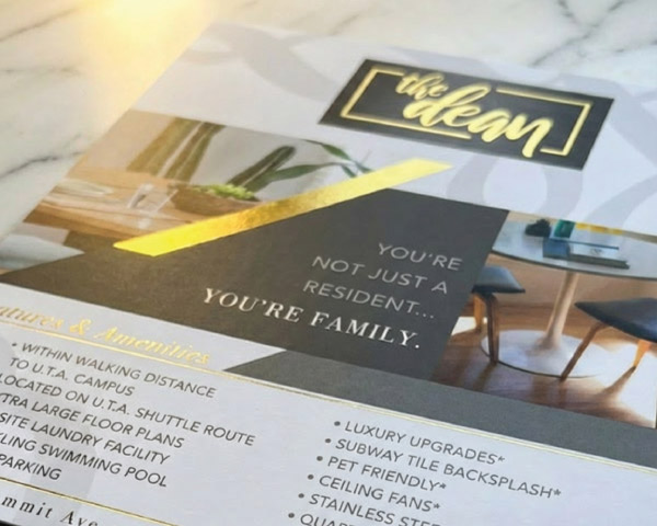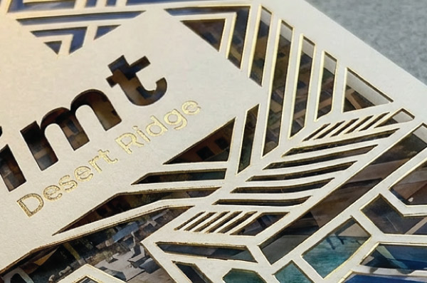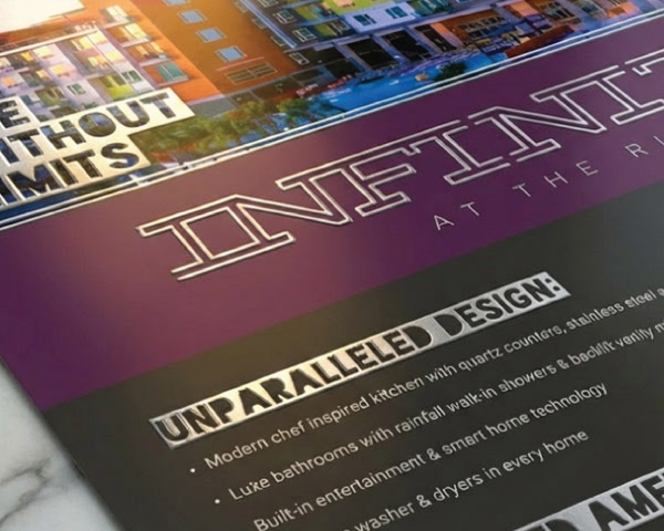 Specialty finishes · Made to be keptEvery piece is a statement. Each community has a unique design with specialty finishes like lasercut, metallic foil, and spot UV. These are the materials that make prospects stop and look twice, and that leasing teams are proud to hand out.