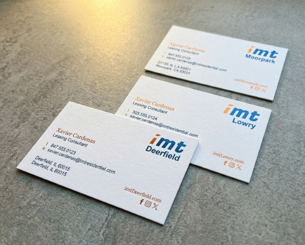Portfolios of 30+ properties with a unified brand identity. High staff turnover? New employees get updated business cards without starting from scratch.