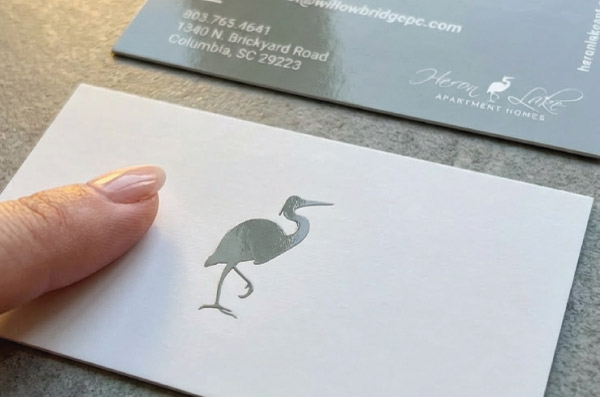 Gold, silver, and rose gold foil stamping for logos, borders, and accent elements that catch the light.
